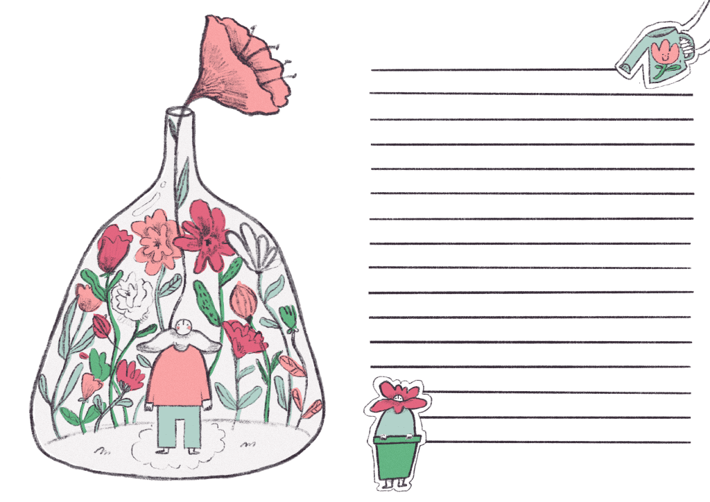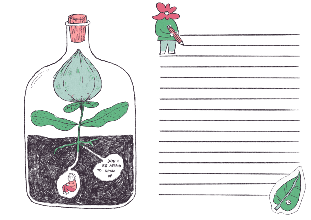 A journal/range of printed items catering to improving mental health and wellbeing that helps offer those who struggle with their mental health to find ways of handling it more positively. Focusing on mental health and community along with a botanical take to explore themes of internal growth and mindfulness.